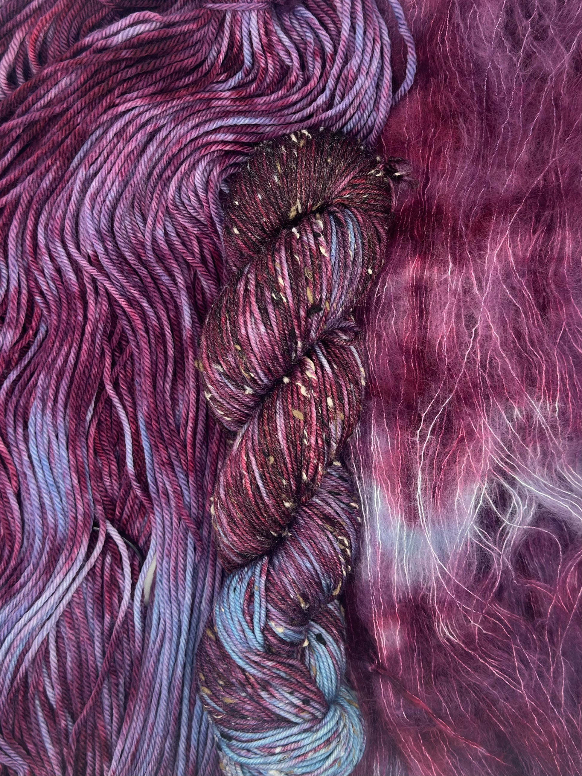Fairy Berry Jam is a dreamy fusion of rich, ripe berries and a swirl of soft, enchanting blues. It’s like the sweetness of a berry-stained summer sky, with hints of wild raspberries, blueberries, and a touch of deep, velvety plum. This colorway captures the feeling of a warm, sunlit afternoon, wrapped in the coolness of a gentle breeze.
